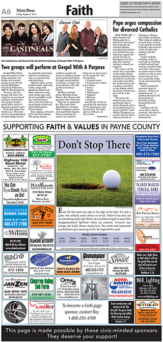 This page is from the Herald-Courier located in Bristol, VA and is owned by BH Media Group, Inc. It is an example of a very attractive format for both the churches and business sponsors.